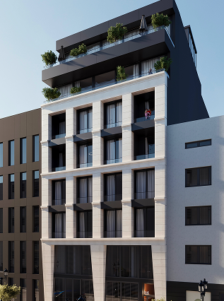 Mira nudi raznovrsne velicine stanova, od 40-250m2 i poslovni (hotelski) deo na prve 2 etaze.